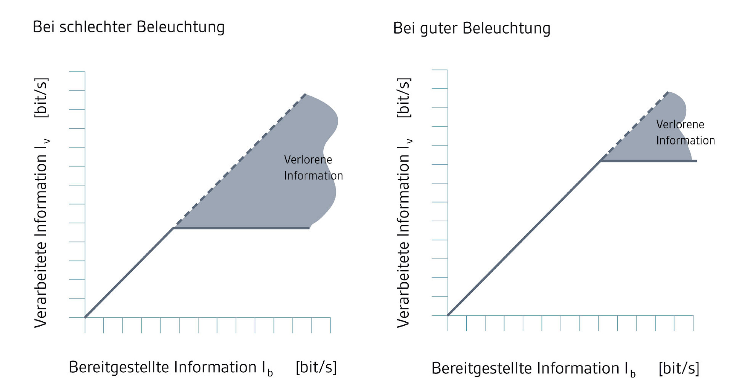 Die nebenstehende Grafik zeigt den Informationsverlust bei guter und schlechter Beleuchtung.