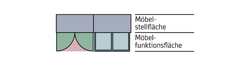 Grundsätzlich dürfen sich Möbelfunktionsflächen weder mit den Funktionsflächen weiterer Möbel noch mit anderen Flächenarten überlagern. Zulässige Ausnahmen sind Überlagerungen